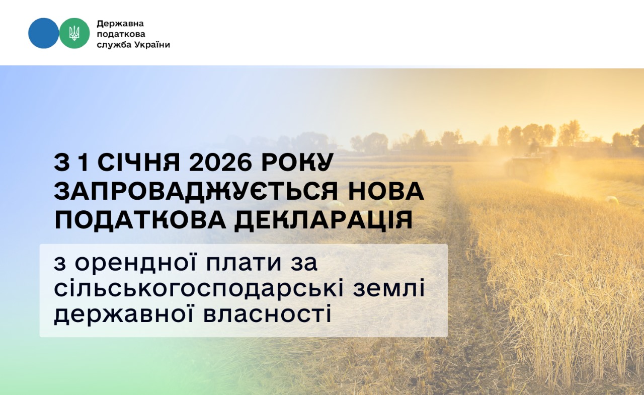 З 1 січня 2026 року запроваджується нова форма податкової декларації з орендної плати для земельних ділянок сільськогосподарського призначення державної власності.