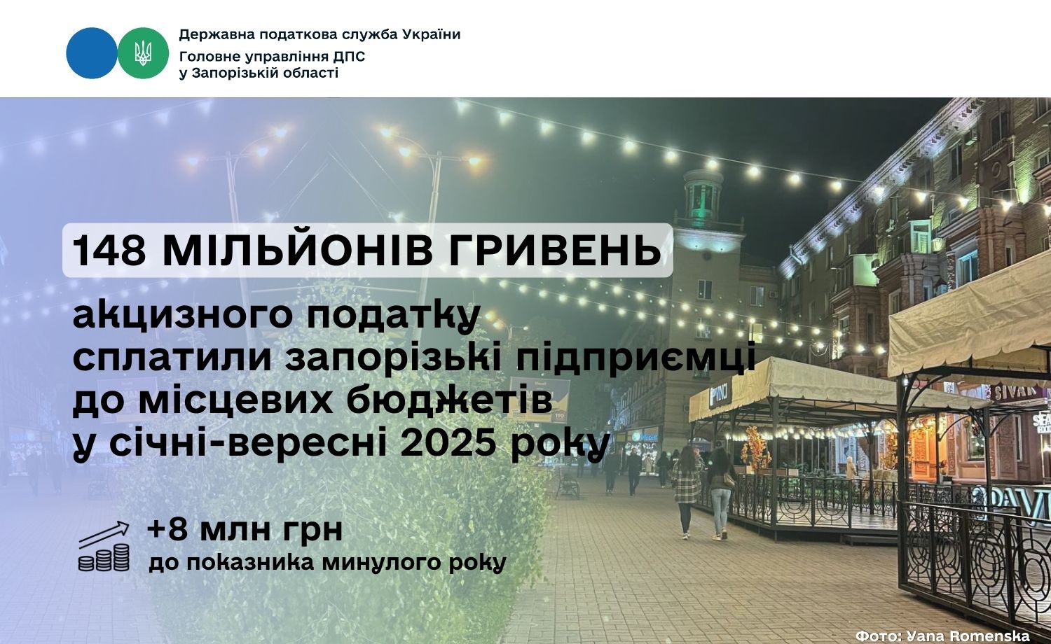 З початку року до місцевих бюджетів регіону надійшло 148 мільйонів 500 тисяч гривень акцизного податку з роздрібної реалізації підакцизних товарів. Як повідомила начальниця Головного управління ДПС у Запорізькій області Оксана Федорова, сплачена сума на вісім мільйонів гривень перевищила минулорічний показник.