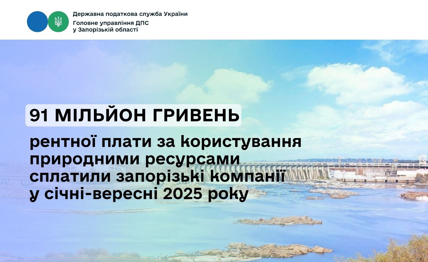 Як зазначила начальниця Головного управління ДПС у Запорізькій області Оксана Федорова, до бюджетів надійшло майже 79 мільйонів гривень рентної плати за спеціальне використання води. Зокрема, до державного бюджету сплачено 43 мільйони 300 тисяч гривень, до місцевих скарбниць спрямовано 35 мільйонів 400 тисяч гривень.