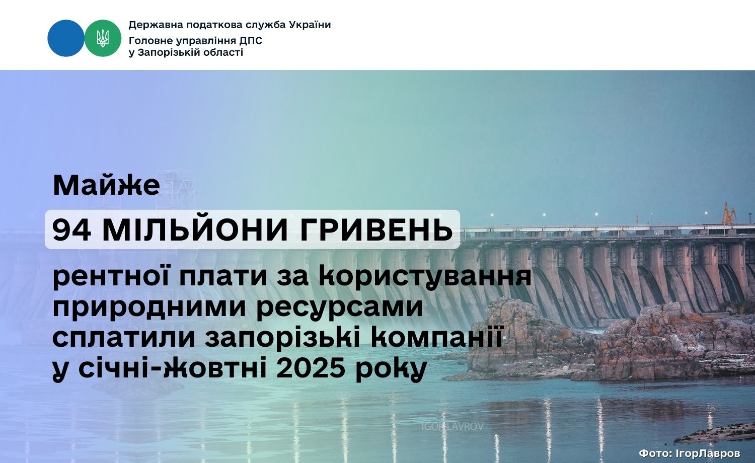 За десять місяців надходження рентних платежів від запорізьких підприємств до бюджетів усіх рівнів склали 93 мільйони 800 тисяч гривень.
