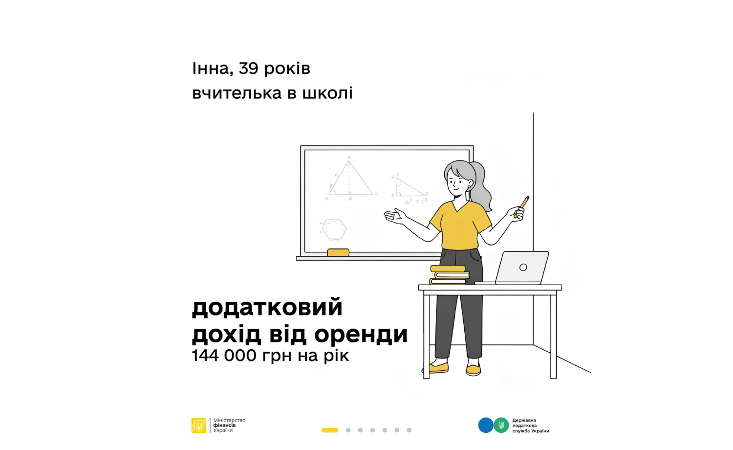 Представляємо шосту історію кампанії – цього разу про вчительку, яка отримує додатковий дохід від здачі квартири в оренду. На її прикладі пояснюємо, які саме податки необхідно сплачувати з такого доходу, як вони розподіляються та які суспільні послуги забезпечують.