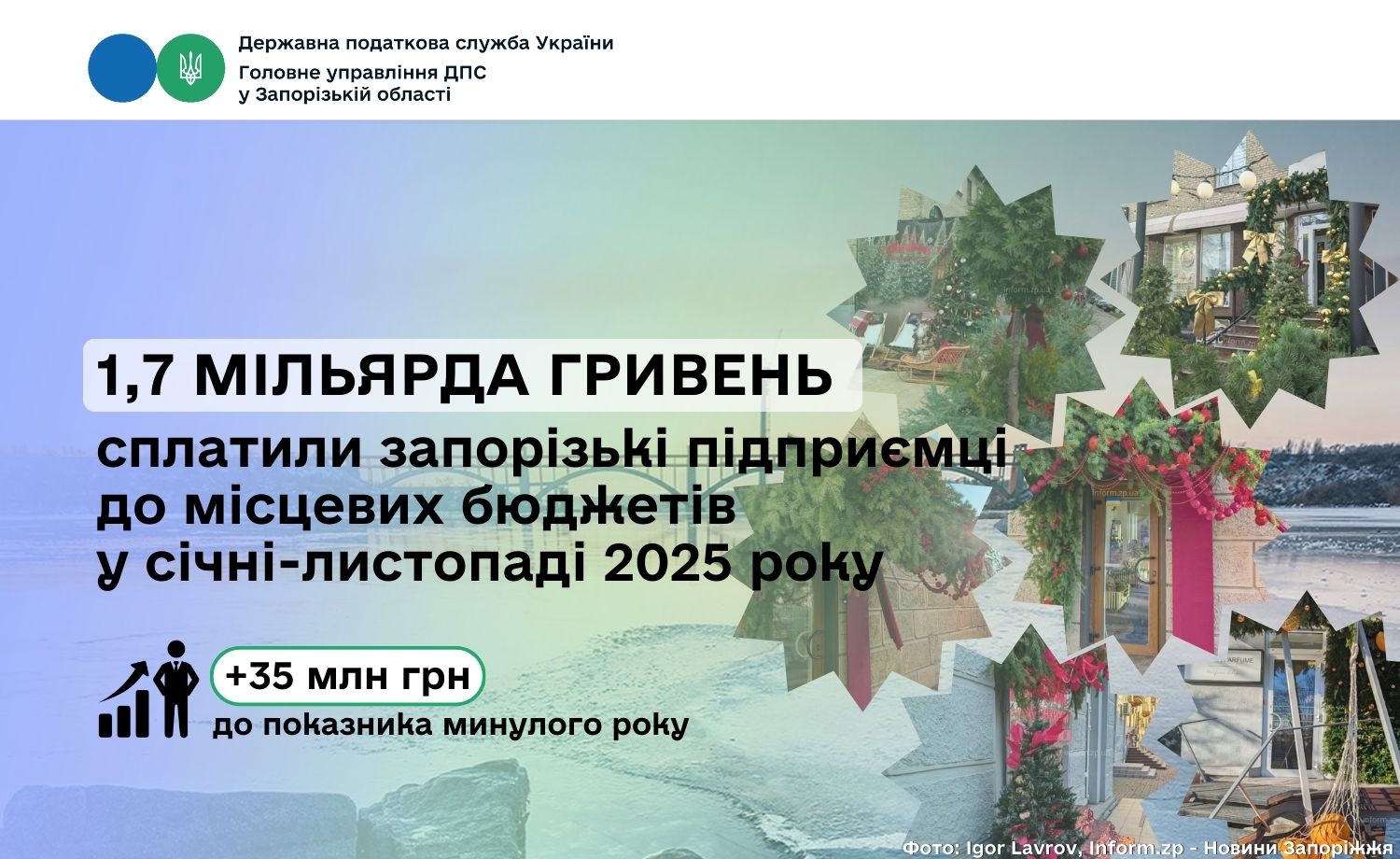 У січні-листопаді до місцевих бюджетів Запорізької області надійшло 1 мільярд 689 мільйонів гривень єдиного податку. Як зазначила начальниця Головного управління ДПС у Запорізькій області Оксана Федорова, рівень минулорічної сплати перевищено на 35 мільйонів гривень.