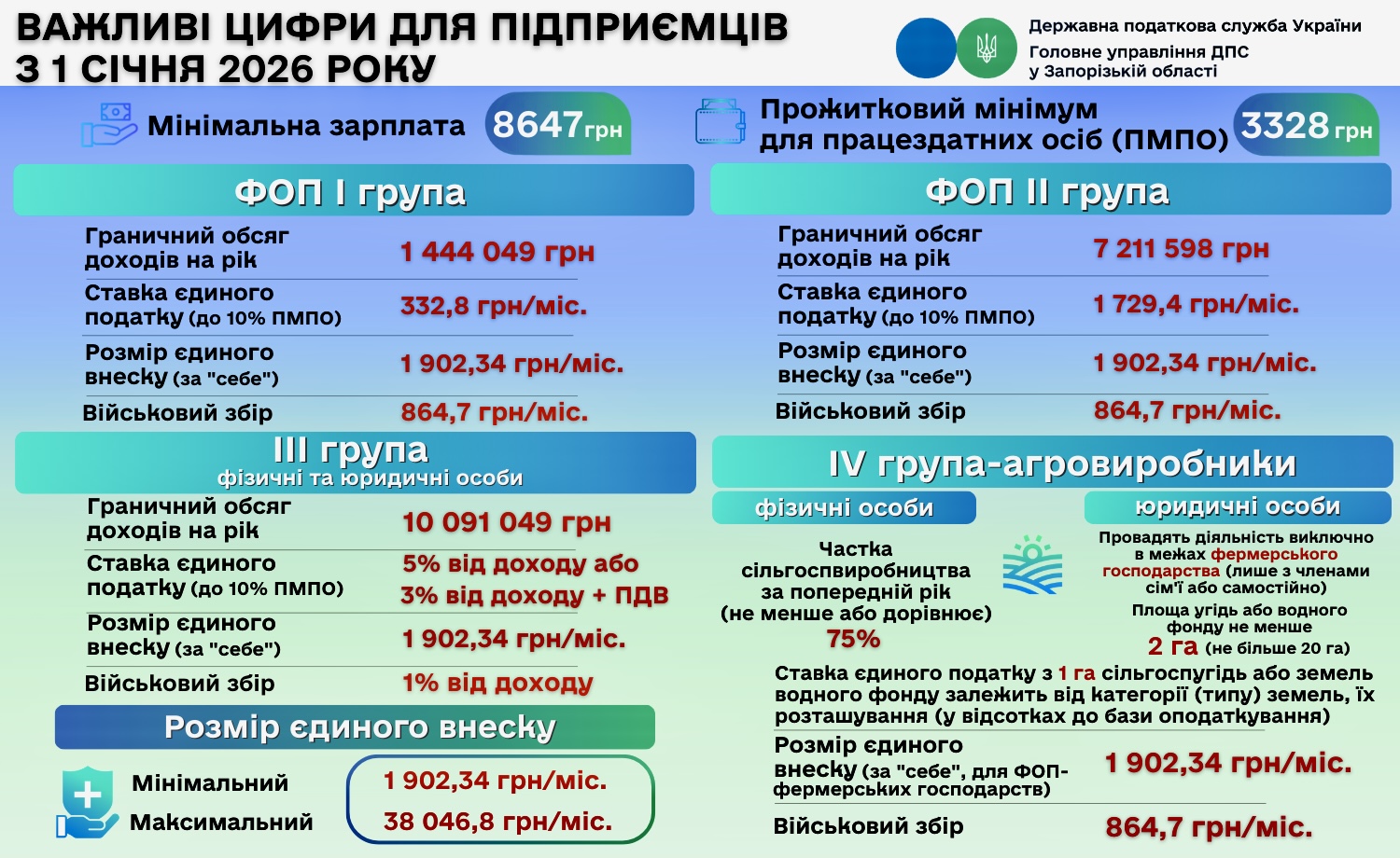 Важливі цифри для підприємців з 1 січня 2026 року
