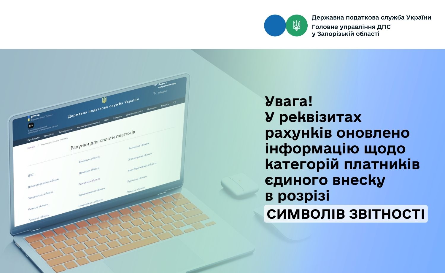 З метою уточнення символів звітності, за якими необхідно сплачувати єдиний внесок, відповідно до чинної редакції постанови Кабінету Міністрів України від 26 листопада 2014 р. № 675 "Про затвердження пропорцій розподілу єдиного внеску на загальнообов'язкове державне соціальне страхування" та з урахуванням наказу Державної казначейської служби України від 08.12.2025 № 301 "Про внесення змін до Довідника відповідності символу звітності пропорціям розподілу єдиного внеску на загальнообов'язкове державне соціальне страхування" у "Реквізитах рахунків для сплати єдиного внеску на загальнообов'язкове державне соціальне страхування" оновлено інформацію щодо категорій платників єдиного внеску в розрізі символів звітності.