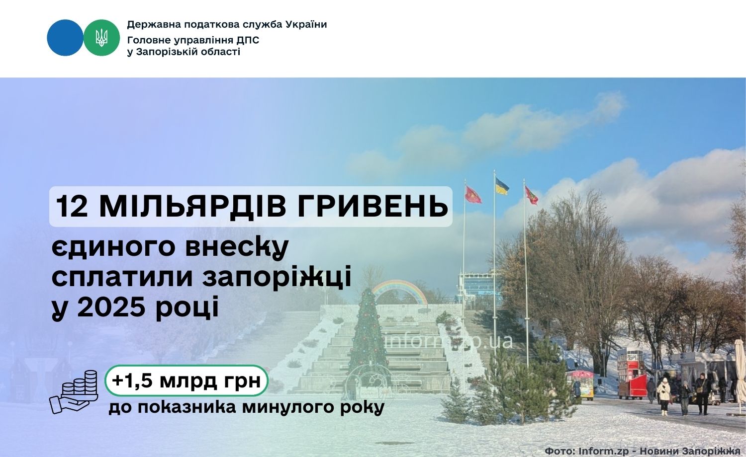 У 2025 році запорізькі платники податків спрямували до пенсійного і соціальних фондів 12 мільярдів 220 мільйонів гривень єдиного внеску на загальнообов'язкове державне соціальне страхування. Рівень надходжень до показника 2024 року збільшено на 1 мільярд 513 мільйонів гривень.