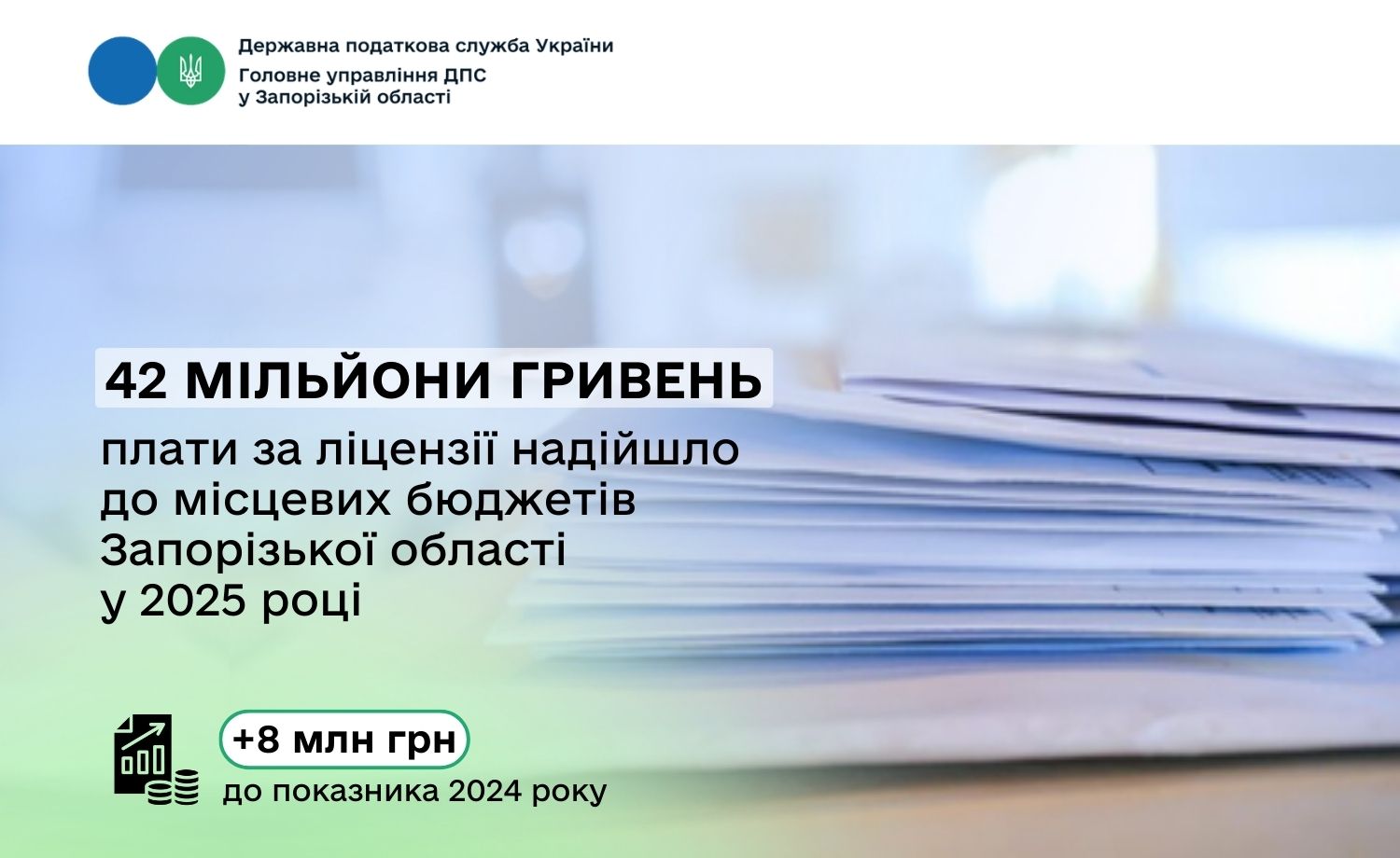 За минулий рік до місцевих бюджетів регіону надійшло 42 мільйони гривень плати за ліцензії на торгівлю підакцизною продукцією. Як зазначила начальниця Головного управління ДПС у Запорізькій області Оксана Федорова, порівняно з показником 2024 року надходження зросли майже на вісім мільйонів гривень.