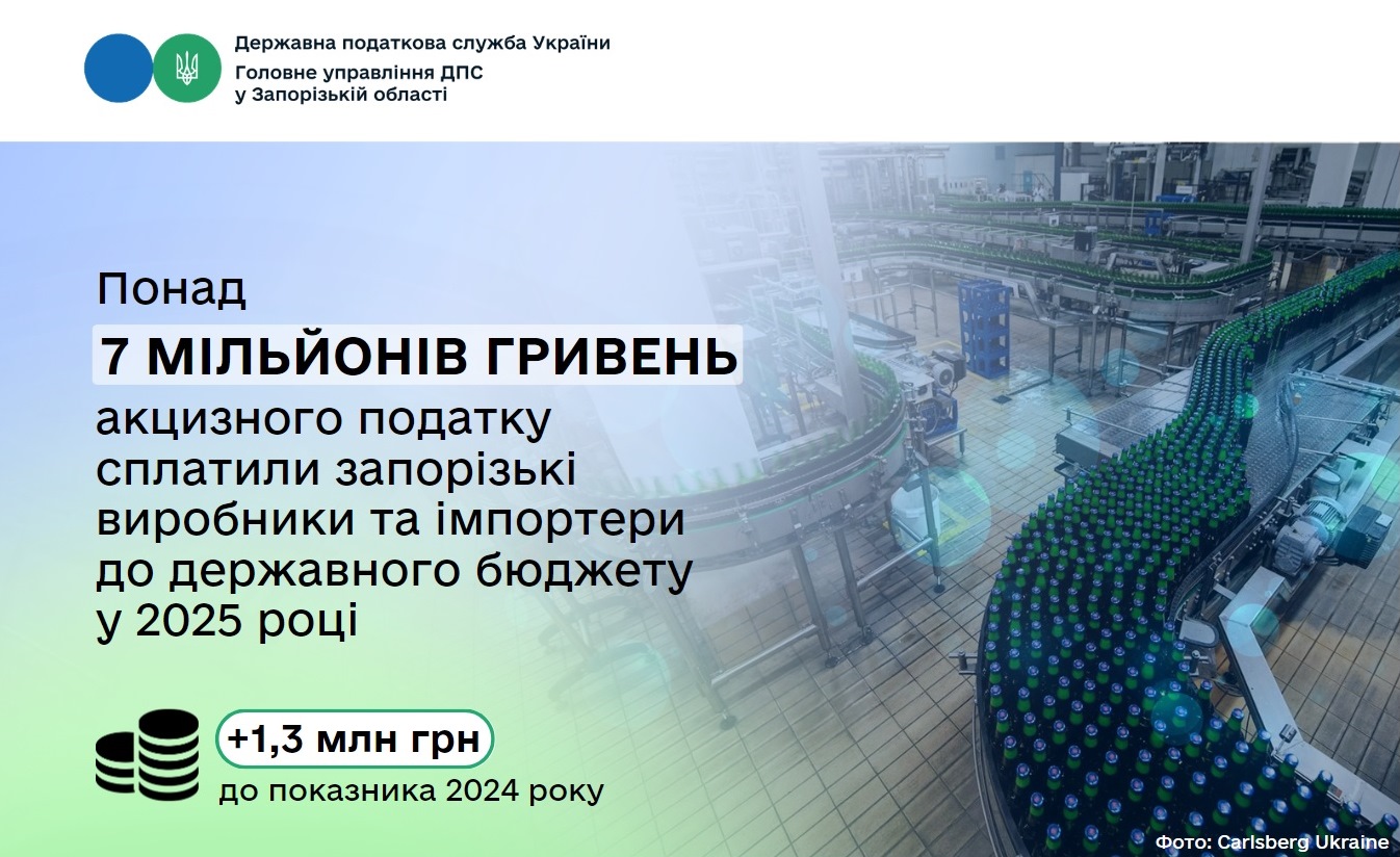 Упродовж минулого року запорізькі імпортери і виробники підакцизної продукції сплатили до державного бюджету 7 мільйонів 398 тисяч гривень акцизного податку. Як зазначила начальниця Головного управління ДПС у Запорізькій області Оксана Федорова, підприємства регіону збільшили відрахування у порівнянні з 2024 роком більш ніж на мільйон гривень.