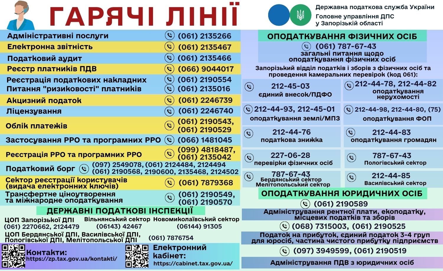 Нагадуємо номери "гарячих ліній" Головного управління ДПС у Запорізькій області