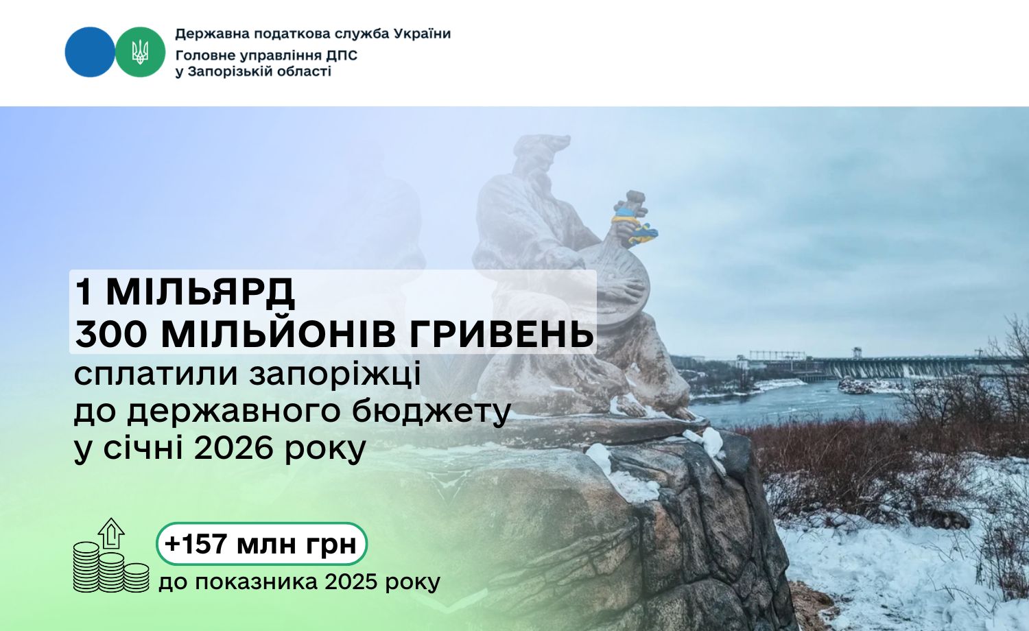 У січні запоріжці сплатили до державного бюджету 1 мільярд 300 мільйонів гривень