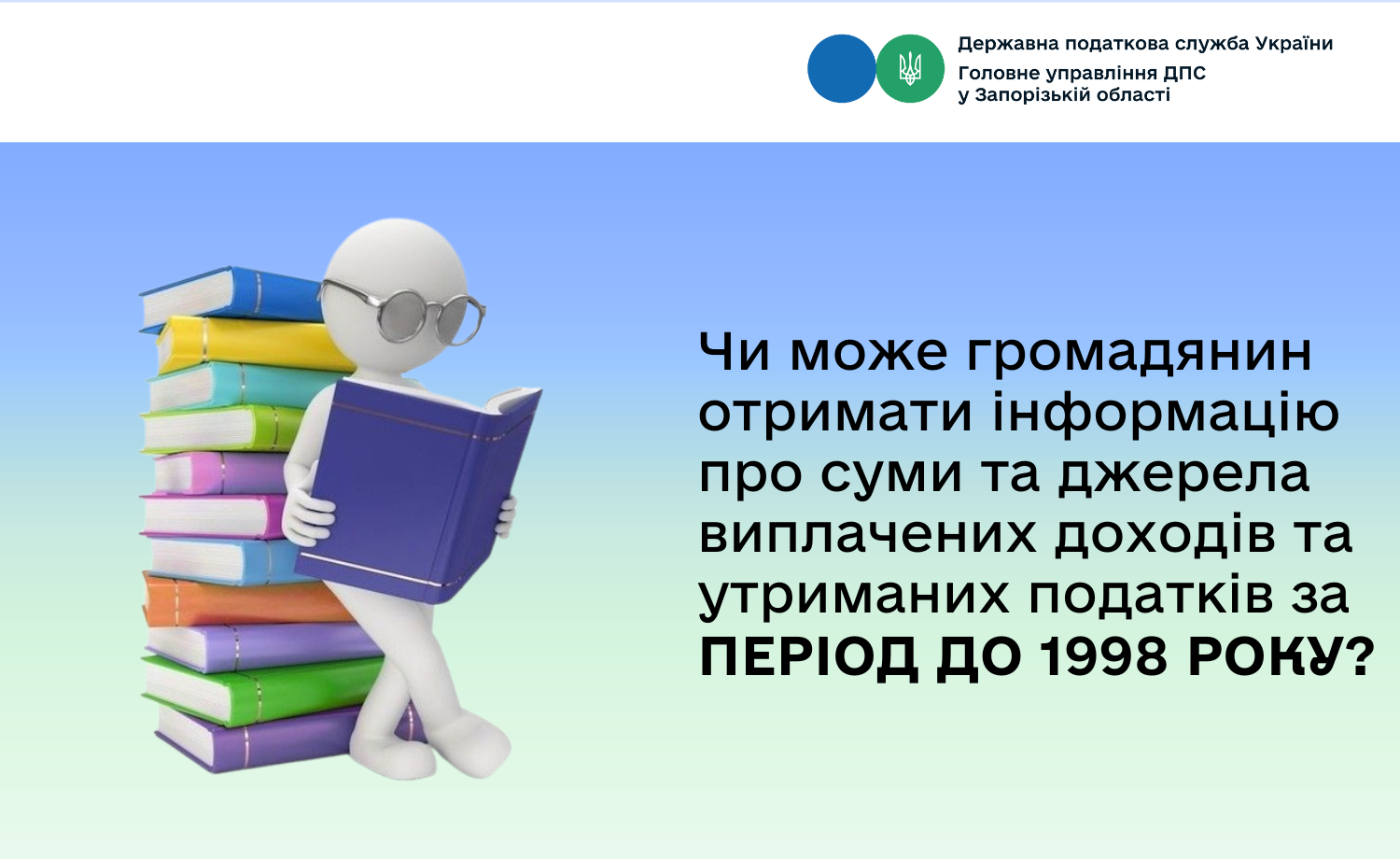 Враховуючи вищевикладене, фізична особа – платник податків може отримати відомості з Державного реєстру про джерела / суми нарахованого доходу, нарахованого (перерахованого) податку та військового збору з 1998 року. До 1998 року чинним на той час законодавством не було передбачено подання до державних податкових інспекцій відомостей про нараховані та виплачені суми фізичним особам доходів і суми утриманих з них податків.