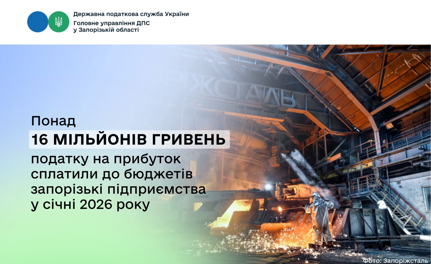 У січні запорізькі компанії і організації сплатили до бюджетів усіх рівнів понад 16 мільйонів гривень податку на прибуток.
