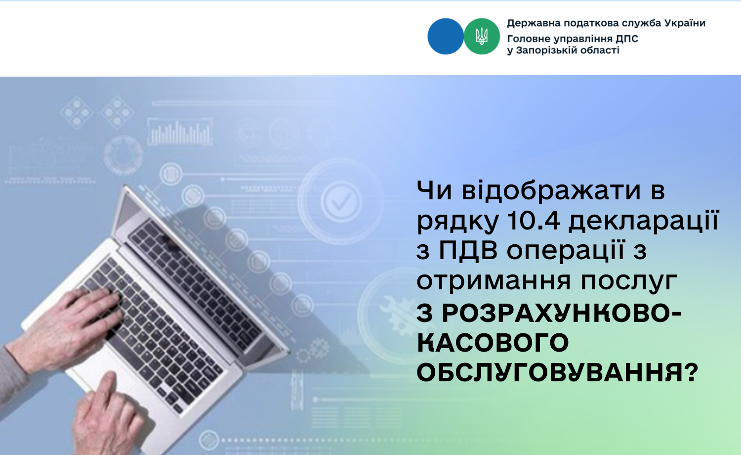 Враховуючи вищезазначене, обсяги придбання платником ПДВ товарів / послуг на митній території України без ПДВ, у тому числі послуг з розрахунково-касового обслуговування, які відповідно до підпункту 196.1.5 пункту 196.1 статті 196 ПКУ не є об’єктом оподаткування ПДВ, підлягають відображенню в рядку 10.4 декларації.