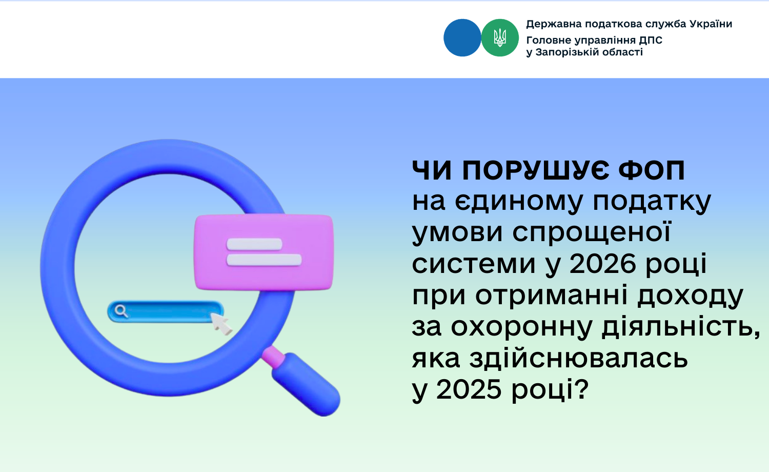 Пунктом 4 розділу І Закону України від 03 грудня 2025 року № 4698-IX «Про внесення змін до Податкового кодексу України та інших законів України щодо особливостей оподаткування банків податком на прибуток підприємств у 2026 році та перенесення строків введення в дію Електронної системи обігу алкогольних напоїв, тютюнових виробів та рідин, що використовуються в електронних сигаретах», який набирає чинності з 01 січня 2026 року, підпункт 291.5.1 пункту 291.5 статті 291 ПКУ доповнено новим підпунктом 11, згідно з яким, зокрема, фізичні особи-підприємці, які здійснюють охоронну діяльність, не можуть бути платниками єдиного податку другої або третьої групи.