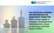 Враховуючи вищезазначене, фізична особа-підприємець – платник єдиного податку другої або третьої групи, яка надала в оренду приміщення на підставі договору, згідно з яким замовником (орендарем) є фізична особа (громадянин), у разі отримання оплати за оренду від іншої особи (фізичної або юридичної особи, у тому числі, які перебувають на загальній системі оподаткування), не порушує умови перебування на спрощеній системі оподаткування.