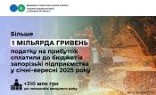 За дев'ять місяців від запорізьких компаній і організацій до бюджетів усіх рівнів надійшло 1 мільярд 87 мільйонів гривень податку на прибуток. Як зазначила начальниця Головного управління ДПС у Запорізькій області Оксана Федорова, минулорічний показник надходжень перевищено на 310 мільйонів гривень.