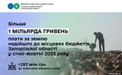 Плата за землю: бюджети запорізьких громад отримали більше мільярда гривень