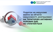Починаючи з 01 січня 2023 року за об’єкти житлової та/або нежитлової нерухомості, у тому числі їх частки, що перебувають у власності фізичних та/або юридичних осіб, що розташовані на територіях активних бойових дій або на тимчасово окупованих російською федерацією територіях України, які включені до Переліку територій, на яких ведуться (велися) бойові дії або тимчасово окупованих російською федерацією, податок на нерухоме майно, відмінне від земельної ділянки, не нараховується та не сплачується за період з першого числа місяця, в якому було визначено щодо відповідних територій дату початку активних бойових дій або тимчасової окупації, до останнього числа місяця, у якому завершено бойові дії або тимчасову окупацію на відповідній території (абзац восьмий підпункту 69.22 пункту 69 підрозділу 10 розділу ХХ «Перехідні положення» ПКУ).