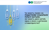 Чи мають право на податкову соціальну пільгу батьки, які мають двох дітей, одна з яких є дитиною з інвалідністю?