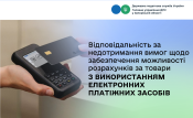 Відповідно до статті 163 прим. 15 Кодексу України про адміністративні правопорушення порушення порядку проведення готівкових розрахунків за товари (послуги), у тому числі недотримання установлених законодавством вимог щодо забезпечення можливості розрахунків за товари (послуги) з використанням електронних платіжних засобів – тягне за собою накладення штрафу на фізичну особу-підприємця, посадових осіб юридичної особи від ста до двохсот неоподатковуваних мінімумів доходів громадян.