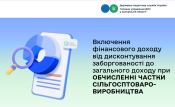 За формою Розрахунку до загальної суми доходу сільськогосподарського товаровиробника (рядок 2 Розрахунку) мають враховуватись всі суми доходів від будь-яких операцій, в тому числі і доходи від дисконтування.