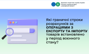 Так, відповідно до пункту 14 прим. 2 Постанови № 18 на період воєнного стану граничні строки розрахунків за операціями з експорту та імпорту товарів становлять 180 календарних днів та застосовуються до операцій, здійснених з 05 квітня 2022 року.